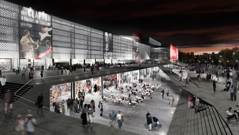 O projeto integra e dá conceito de unidade ao equipamento esportivo que foi parcialmente construído nos anos 90, agregando ainda uma arena fechada para 8.000 espectadores para múltiplos eventos. Uma ampla praça comercial foi criada no nível das arquibancadas baixas, com “ilhas” ao meio. Isso permite um arranjo do comércio para os dois lados: antes do jogo, os estabelecimentos ficam voltados para fora; durante o jogo, apenas para dentro.